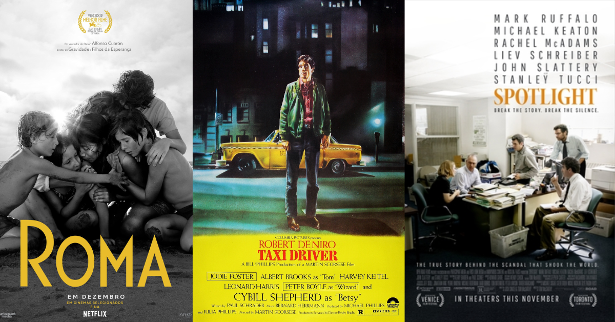 Roma e Taxi Driver têm temas mais adultos; Spotlight também é denso. Se tiver crianças pequenas, talvez troque por uma animação primeiro e deixe esses para quando elas dormirem.