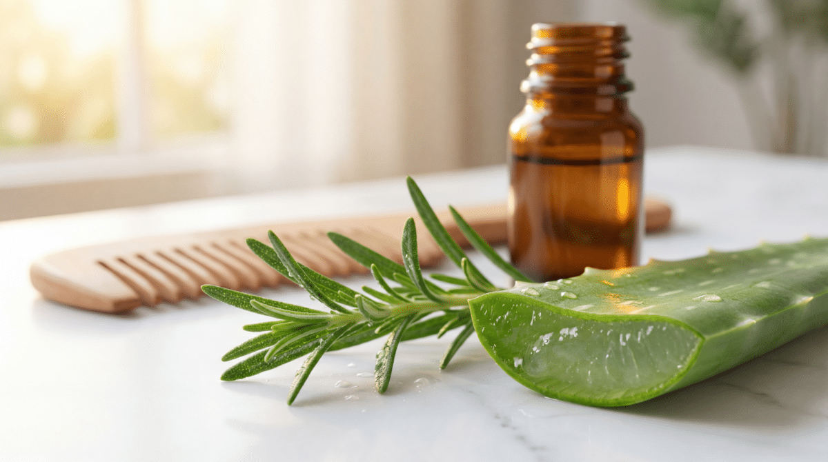 - Infusão concentrada de alecrim — prepare um chá forte, deixe esfriar e aplique como último enxágue. A prática ajuda a manter o couro cabeludo equilibrado.