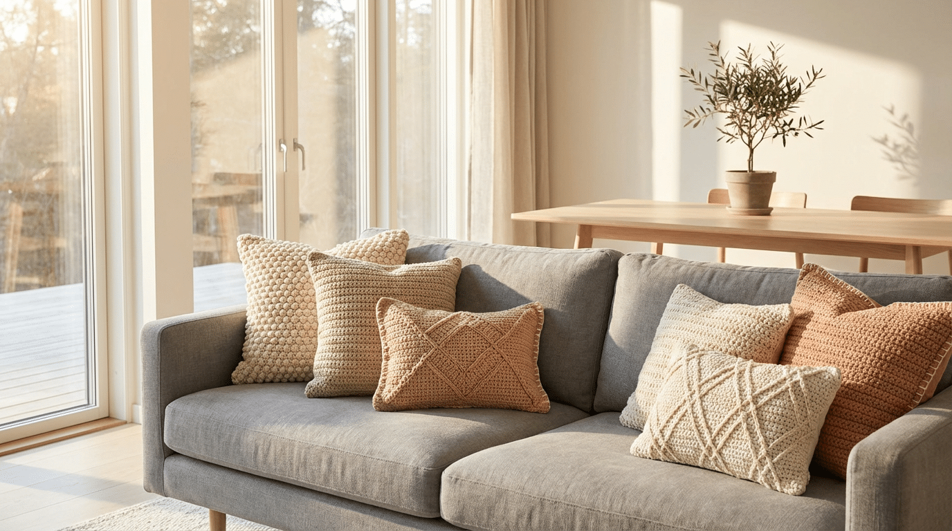 Eu acompanho a cena de décor de perto e me impressionou ver como as almofadas de crochê saltaram das lembranças de infância para o topo das tendências de 2025. A peça artesanal virou atalho certeiro para repaginar sofás e poltronas com custo controlado e alto impacto visual.