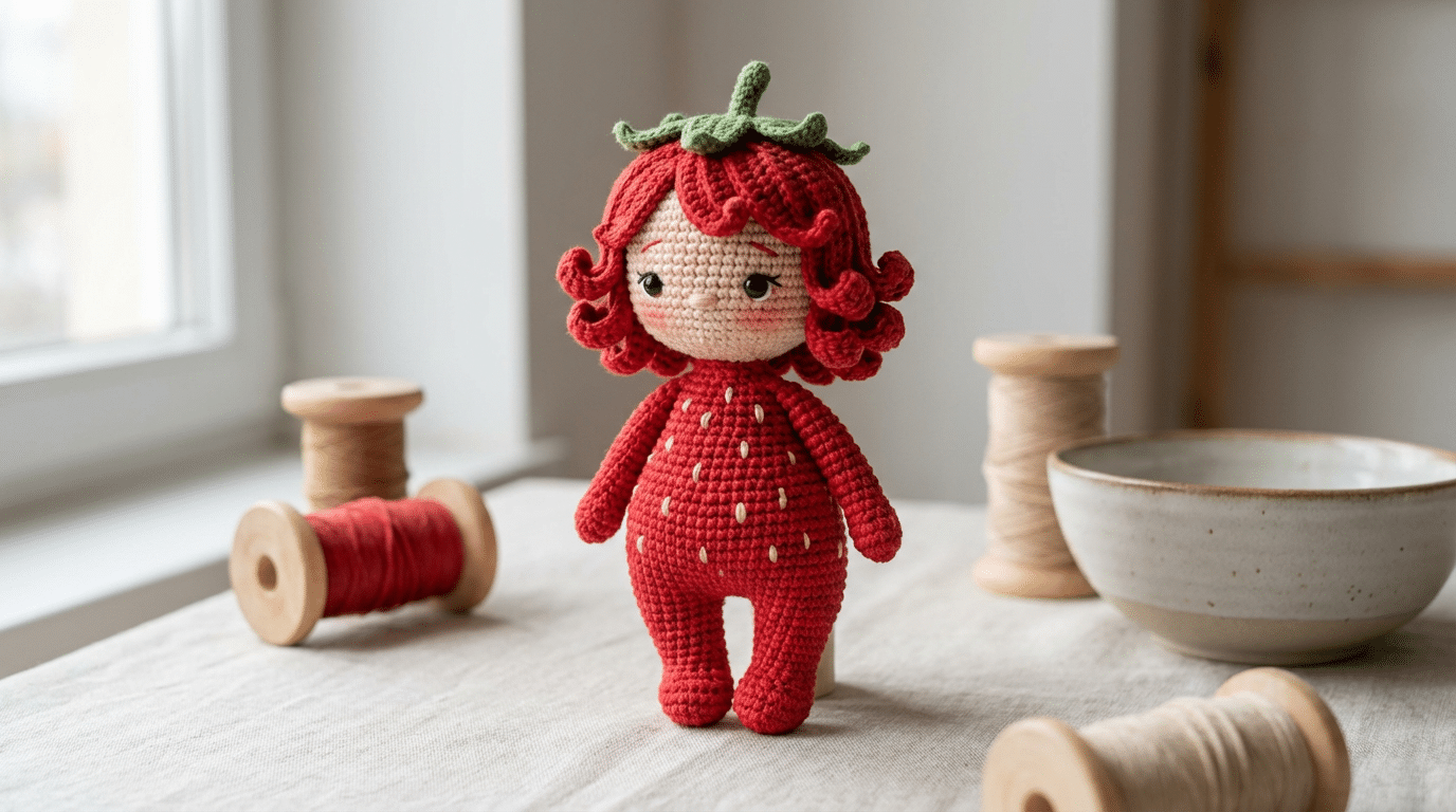 Sem segredos mirabolantes, a boneca morango prova que, com seleção correta de materiais e cuidado nos detalhes, o amigurumi pode ganhar aparência de peça de boutique e encantar qualquer prateleira.