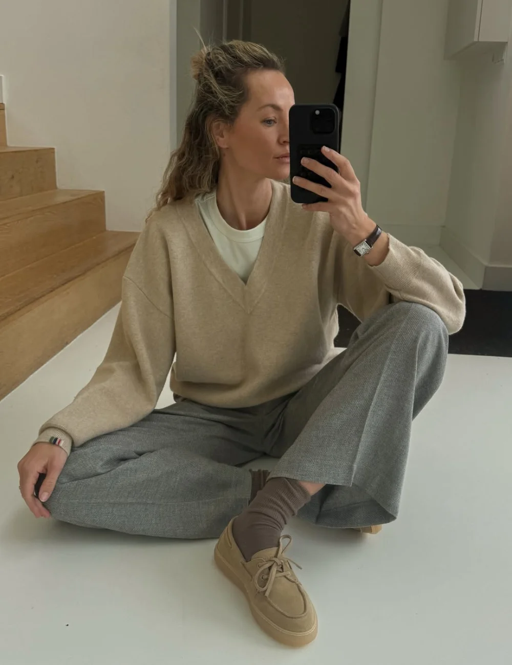 - Blazers oversized equilibram leggings e tecidos fluidos.