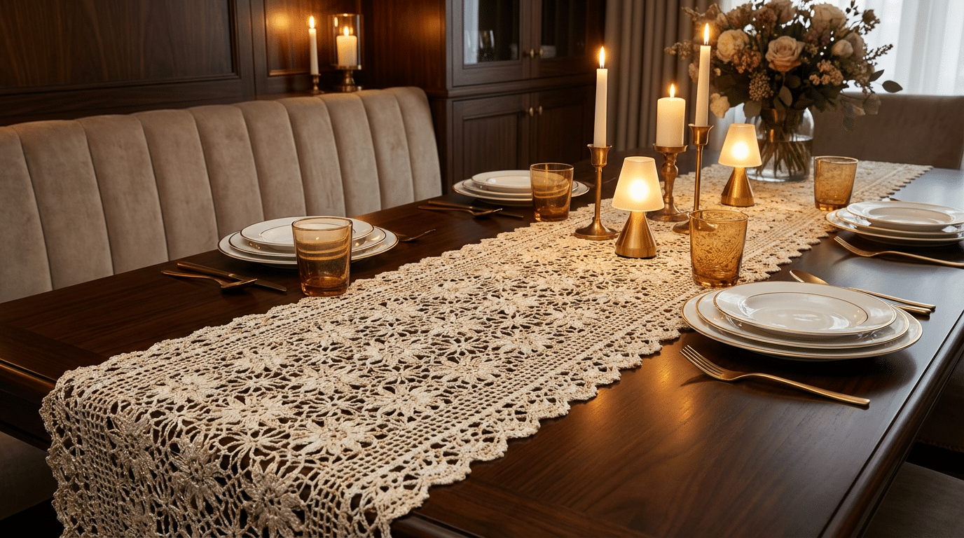 InícioCrochêCaminho de mesa de luxo viraliza com fios brilhantes e renda estratégica