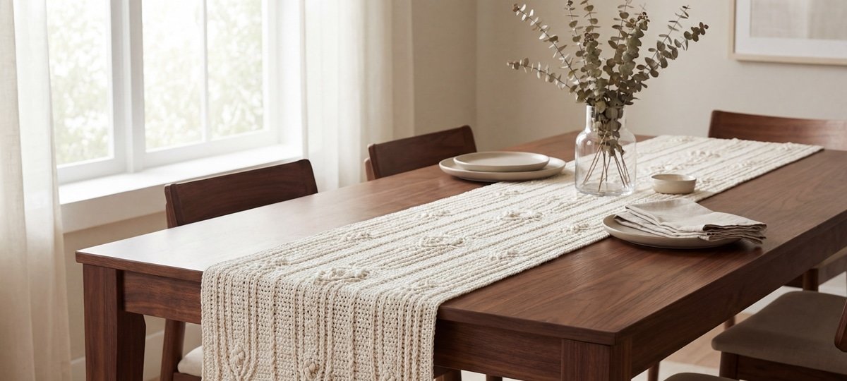 Sabe aquela sensação de casa organizada, tudo limpinho, mas sem o charme de capa de revista? Um simples caminho de mesa em crochê resolve. A peça cria aconchego instantâneo, destaca arranjos e louças e entrega sofisticação sem reforma, móveis novos ou grandes gastos.