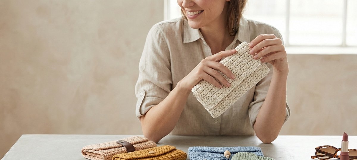Dominar um ponto fácil e entender como o fio se comporta já coloca o artesão no caminho certo para criar 21 (ou mais) carteiras diferentes. Variar o tamanho da aba, adicionar franjas, trocar o botão por fecho metálico ou inserir bolsos internos faz cada versão ganhar identidade própria. Assim, o crochê se encaixa tanto no guarda-roupa de quem procura praticidade diária quanto nas mãos de quem quer presentear ou empreender.