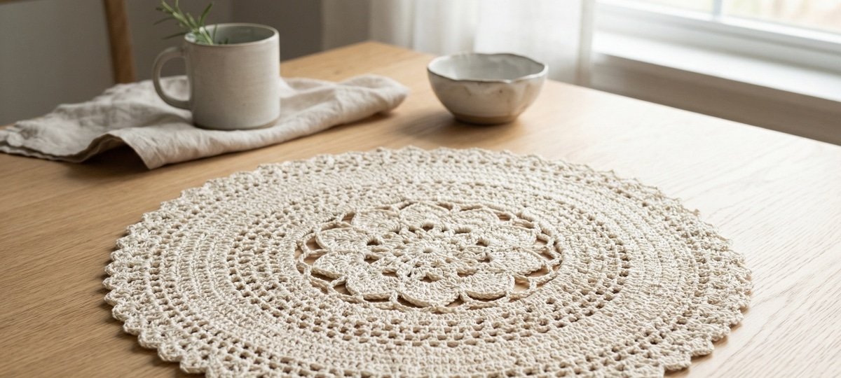 Eu acompanho de perto as novidades do artesanato e me surpreendi ao ver como o centro de mesa em crochê voltou a ganhar espaço na decoração moderna. A peça clássica reapareceu em projetos atuais porque entrega textura, desenha o ambiente e ainda leva o charme de algo feito à mão.