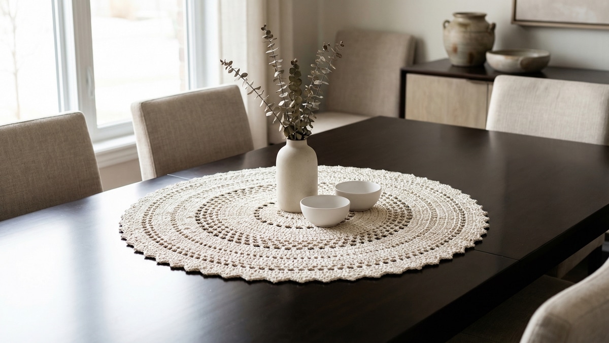 Eu acompanho de perto as tendências de interiores e me surpreendi ao ver como os centros de mesa em crochê voltaram a marcar presença em projetos sofisticados. O retorno não é apenas nostálgico: a peça ganhou status de detalhe de luxo capaz de aquecer mesas de vidro, mármore ou madeira laqueada sem perder o frescor contemporâneo.