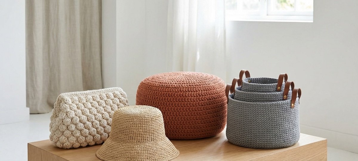 Em 2026, criadores tratam o crochê como arquitetura têxtil. O foco passou da repetição de pontos para construções volumosas que chamam atenção em ambientes minimalistas ou em looks urbanos.
