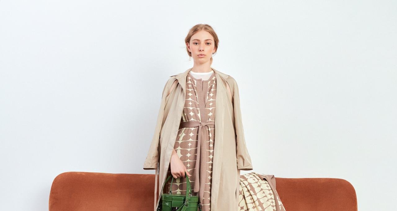 A direção criativa de Mariah Salomão Viana, do Novo Louvre, imprime aos modelos shapes estruturados, pregas funcionais e volumes calculados. É influência direta da vivência de Carolina, filha de arquiteta, e de Fabio, profissional do mercado imobiliário, resultando em peças que circulam com naturalidade entre espaços privados, semiprivados e públicos.