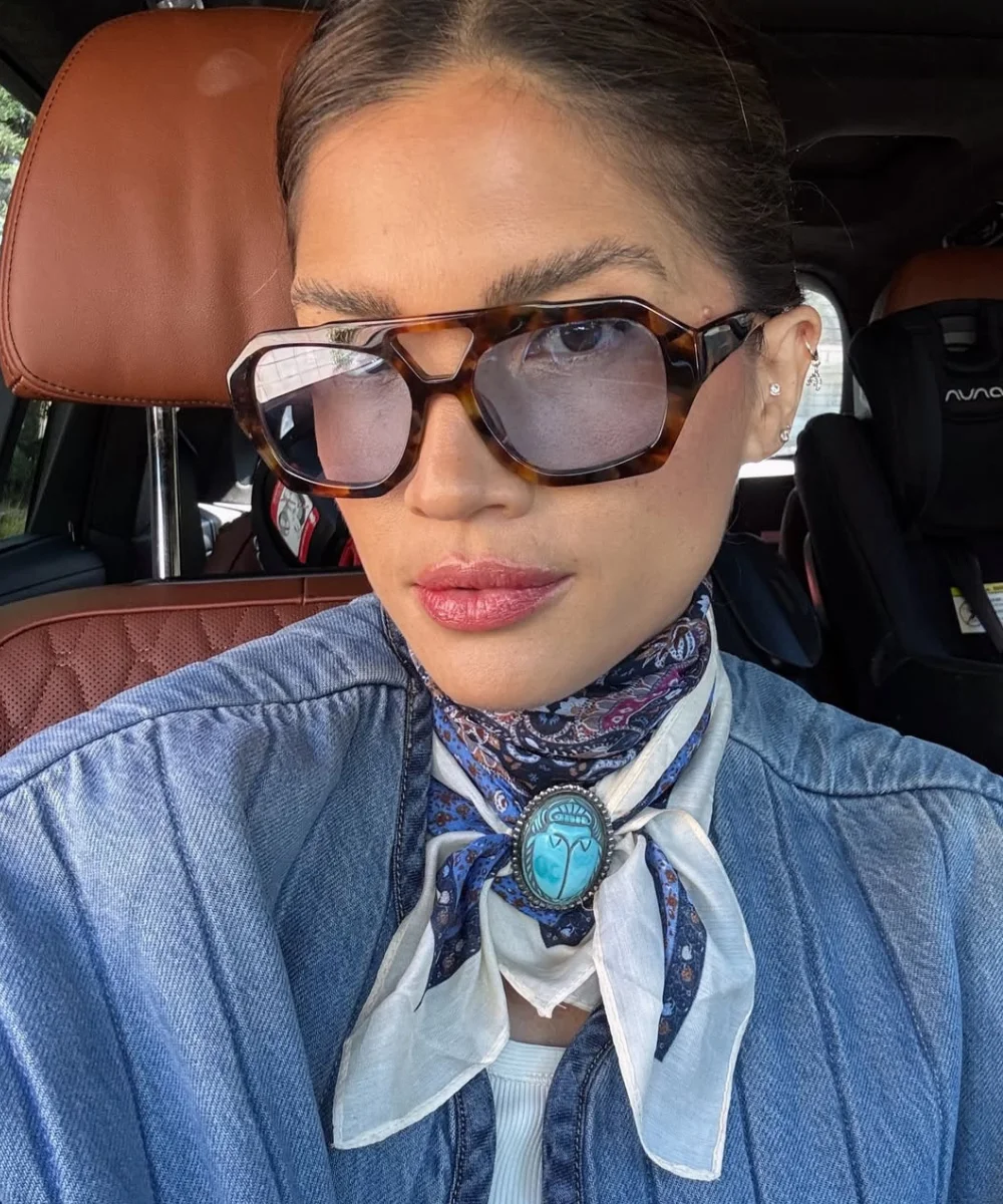 A padronagem paisley, presente em bandanas clássicas, desponta como favorita por reforçar o ar vintage. Quem busca variar pode recorrer a listras discretas ou animal print, que também harmonizam bem com pingentes orgânicos, corações ou estrelas-do-mar.