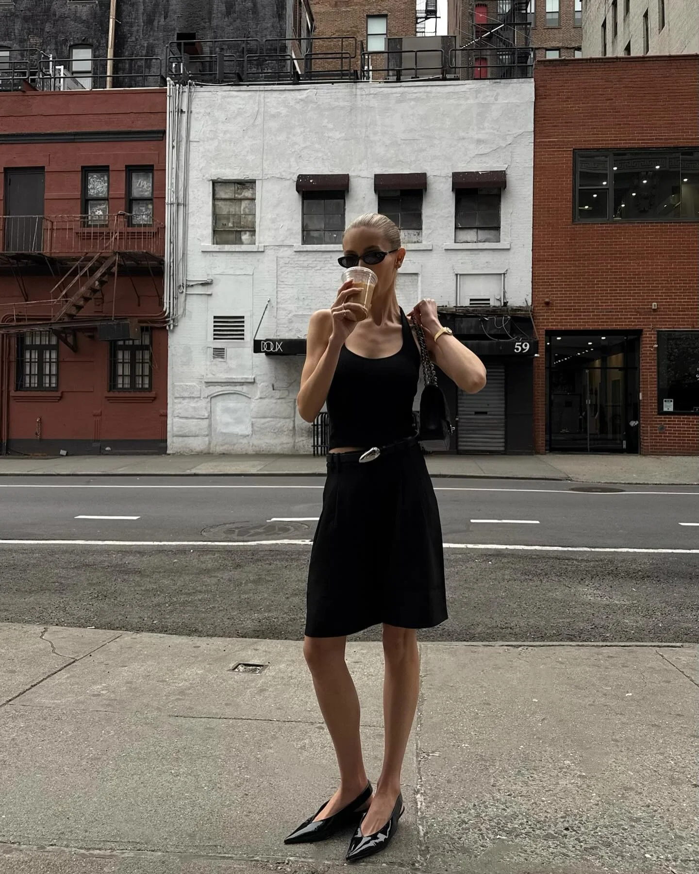 O clássico preto total aparece com proporções equilibradas e detalhes marcantes. Invista em modelagens diferenciadas – como calça de alfaiataria ampla ou blazer estruturado – e finalize com statement pieces, a exemplo de um cinto de fivela prateada ou slingback vinílico. O resultado sai do óbvio sem perder a elegância.