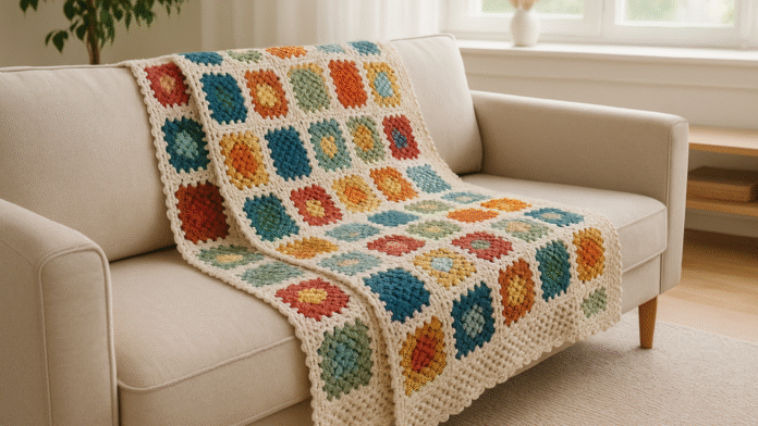 Manta de Crochê com Squares: transforme sobras de fios em aconchego (e muito estilo!)