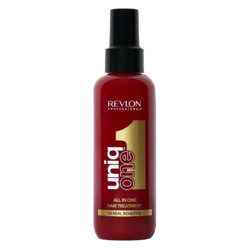 1. Revlon Uniq One – spray creme de 150 ml com pantenol. Oferece hidratação, brilho e proteção térmica em um só passo, mas exige moderação em fios finos.