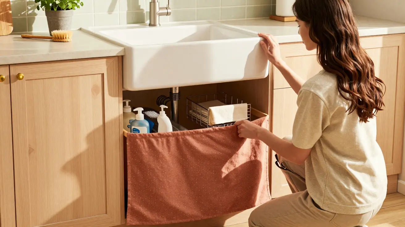 Organizar embaixo da pia virou prioridade em 2026, impulsionando uma solução nostálgica: trocar as portas do armário por uma saia de tecido, barata e fácil de instalar.