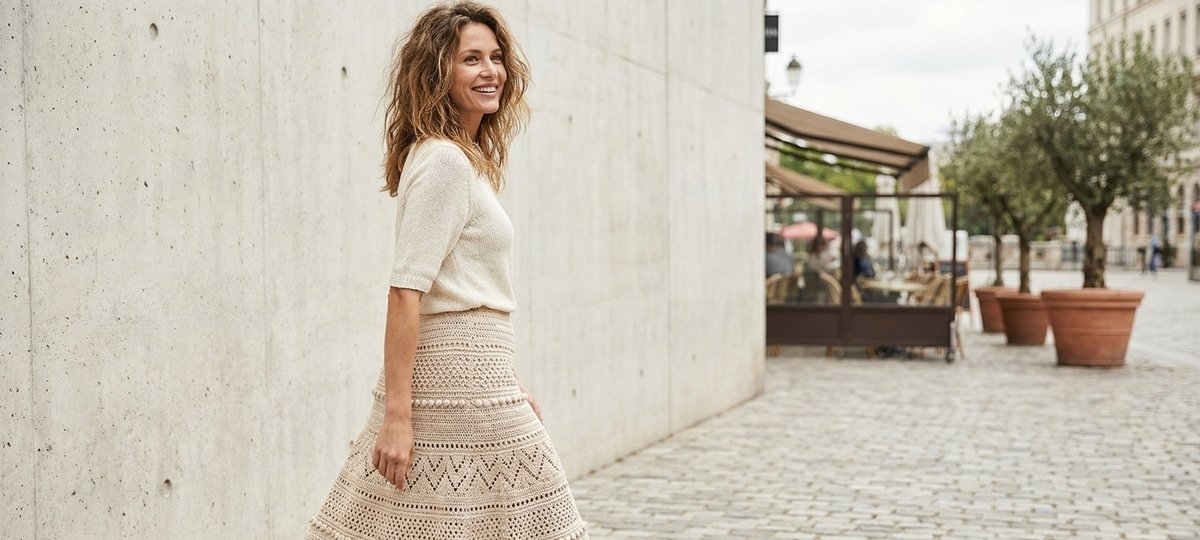 Gancho inicial: As saias de crochê deixaram a praia para brilhar nas ruas. Com pontos simples, gráficos claros e alguns truques de modelagem, até quem ainda conta as primeiras carreiras pode confeccionar peças modernas, confortáveis e cheias de movimento.