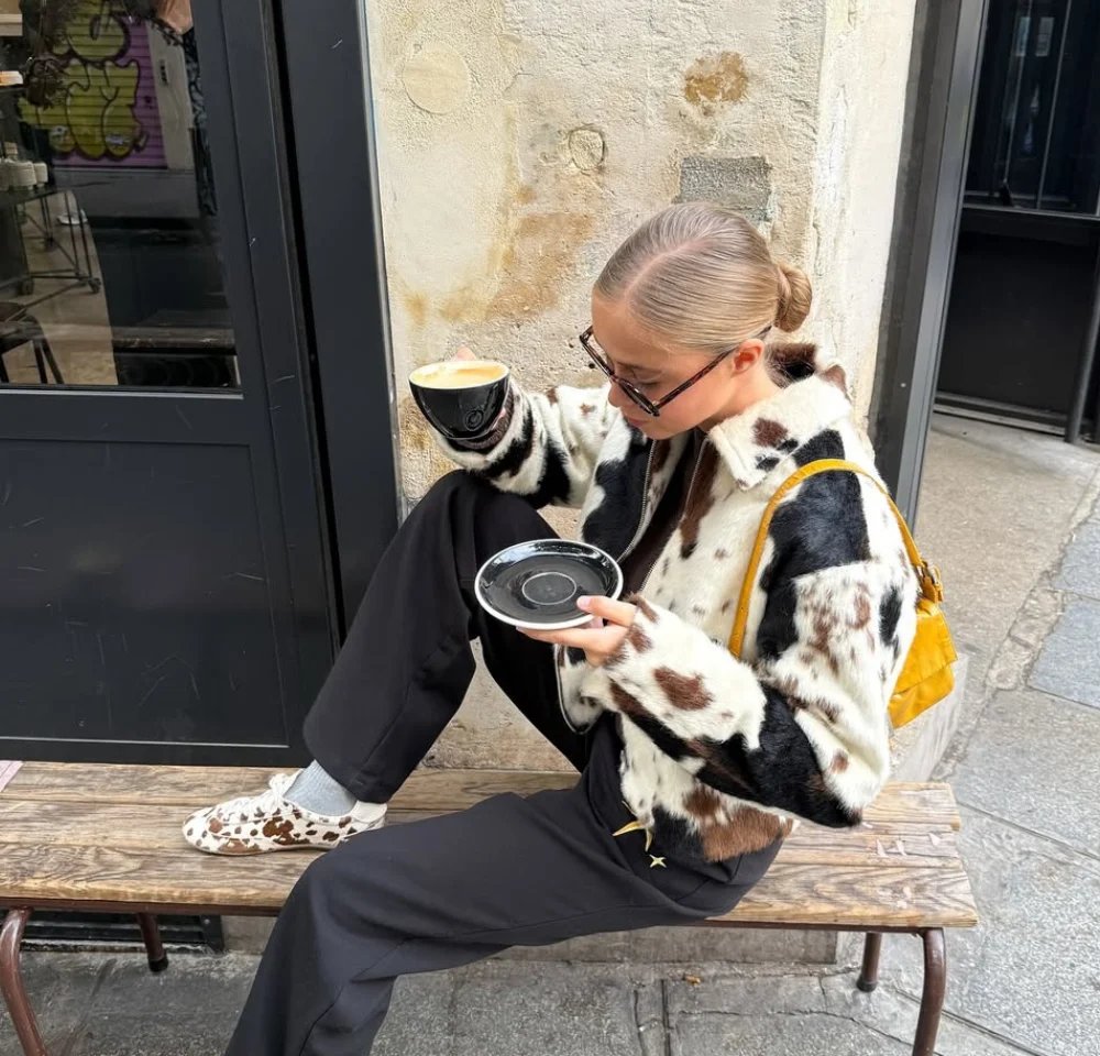 A padronagem inspirada no gado leiteiro reaparece em versões modernas, sobretudo em mocassins e tênis flat, ótimos companheiros para dias frios. O visual ganha instantaneamente um toque divertido e menos óbvio, sem perder a usabilidade.