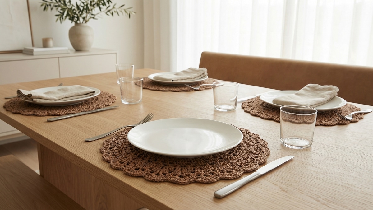 Eu acompanho lançamentos de decoração há anos e me surpreendi com a força que os sousplats de crochê ganharam nas mesas brasileiras. A peça artesanal deixou de ser coadjuvante e passou a ditar o clima de jantares, de encontros a dois a reuniões familiares com muitos convidados.