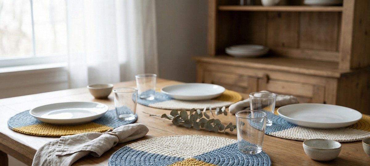 O grande trunfo do sousplat em crochê está na versatilidade. Uma única coleção, planejada com fios resistentes e uma paleta inteligente, resolve desde o café da manhã em família até o jantar romântico ou a ceia de Natal. O segredo está em variar pontos, cores e detalhes, sem precisar de pilhas de pratos diferentes.