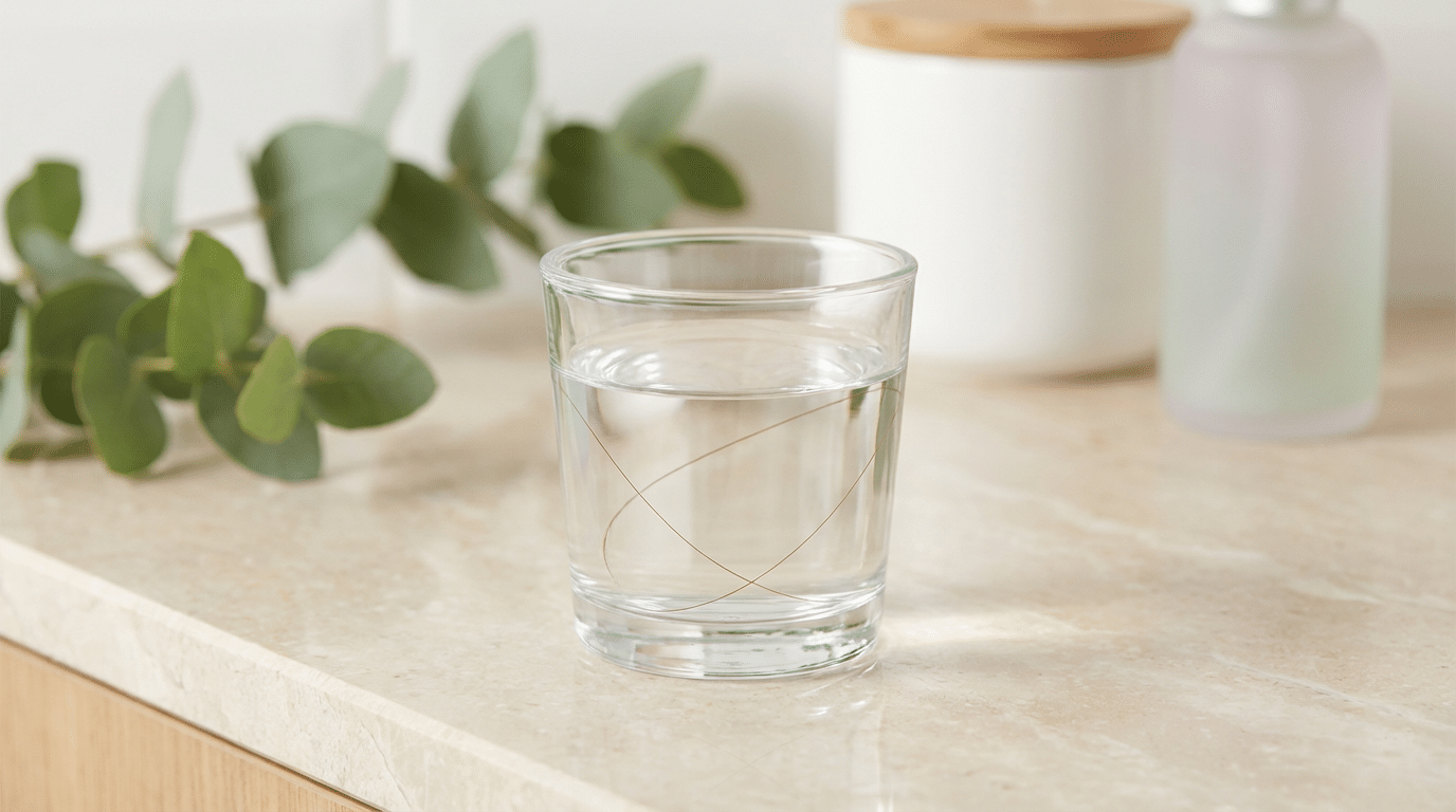 1. Encha um copo transparente com água filtrada em temperatura ambiente.