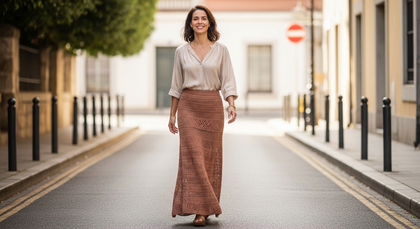 Ei, amiga! Já percebeu como a saia de crochê está pipocando em todos os feeds ultimamente? Eu, que adoro uma peça com história, tô completamente rendida (sem trocadilhos 😜). Então senta com seu café – ou aquele chá geladinho – que hoje a gente vai bater um papo delicioso sobre por que essa peça handmade é tudo de bom e como você pode colocar a sua pra jogo sem medo de ser feliz.
