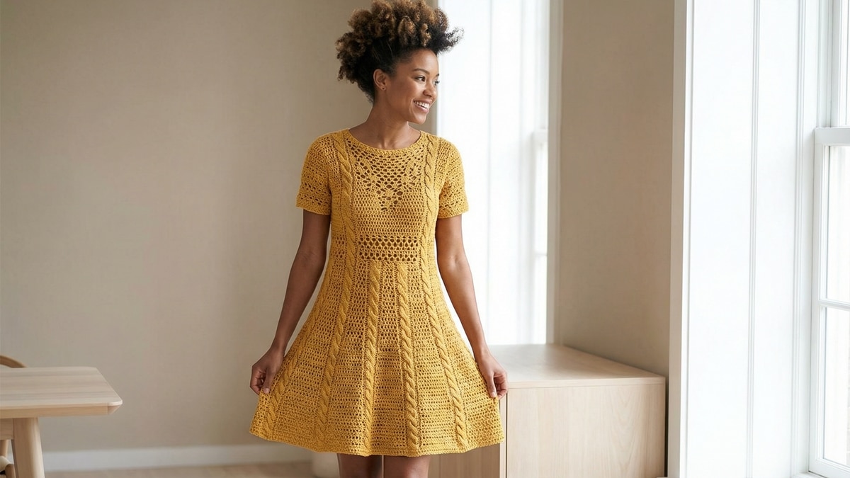 Com planejamento de gráfico, escolha adequada do fio e atenção aos detalhes de acabamento, o vestido de crochê mostarda em silhueta evasê confirma que a moda artesanal continua a ganhar força – unindo expressão pessoal, longevidade e sofisticação em uma única peça.